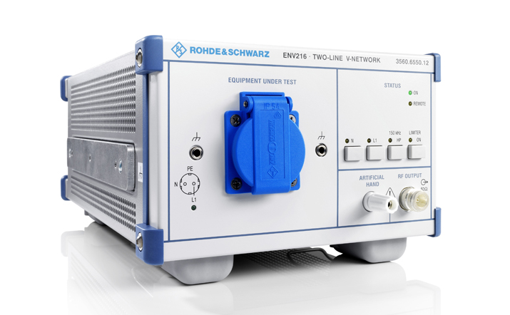 The R&S ENV216 Two Line V-Network is constructed using air-core inductances and conforms with the recommendations of CISPR 16-1-2 (EN 55016-1-2).