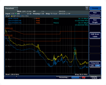 R&S?ESR是接收機著名制造商Rohde & Schwarz公司高端認證級產品。滿足商用和軍用標準(如CISPR、EN、ETS、ANSI、FCC、VCCI、MIL-STD-461、DO160和GJB151B)的要求。
